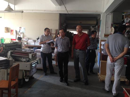2015年9月15日上午,市城投集團工會主席江強生、安保部部長梁玉萍一行來到集團公司所屬單位德利彩印有限公司進行安全生產檢查。