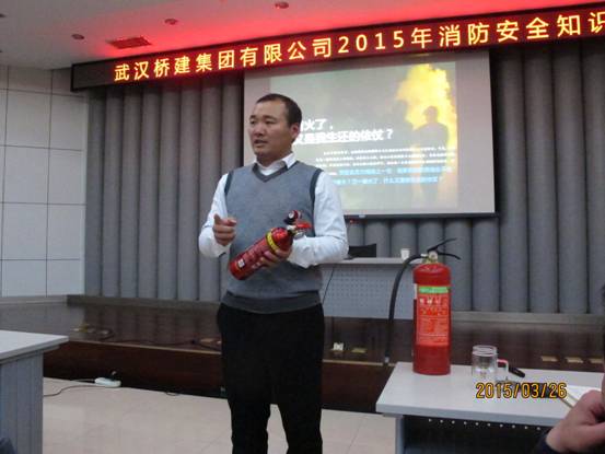 2015年3月26日下午,公司邀請武漢市消防宣傳防火技術咨詢中心老師來公司本部進行消防知識講座,重點講解火災發生后如何正確逃生。參加培訓的有集團公司相關領導和各部門人員,在建項目施工及監理單位人員,物業公司及如家酒店職工,共計100余人。