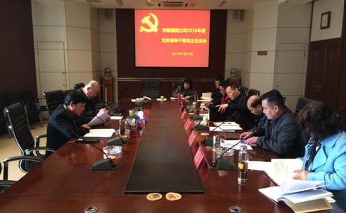 2月27日上午,橋建集團公司在1501會議室召開2016年度黨員領導干部民主生活會,公司黨委書記、董事長陳春保同志主持會議并講話,公司領導班子成員朱明剛、耿炳海、宋志華、劉艷、盧思東出席會議,城投集團工會副主席申志忠同志受城投黨委委派到會指導。