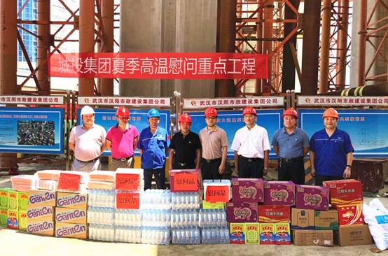 與此同時,受城投集團董事長金國發委托,城投集團總經理助理李衛來到橋建集團負責代建的漢江大道寶豐路硚口路工程現場,看望慰問施工一線的參建單位工作人員,并為他們送上飲用水、毛巾、綠豆、花露水等慰問品。李總在現場詢問了解高溫作業的時間安排和防暑降溫措施,他說,金董事長對大家為了工程建設堅守在高溫一線表示感謝,對大家的工作、生活十分關心,金董事長再三叮囑,一定要合理安排工作和休息,避開正午高溫時段,同時也要堅定戰高溫、斗酷暑的決心,抓緊施工,確保工程進度和安全。