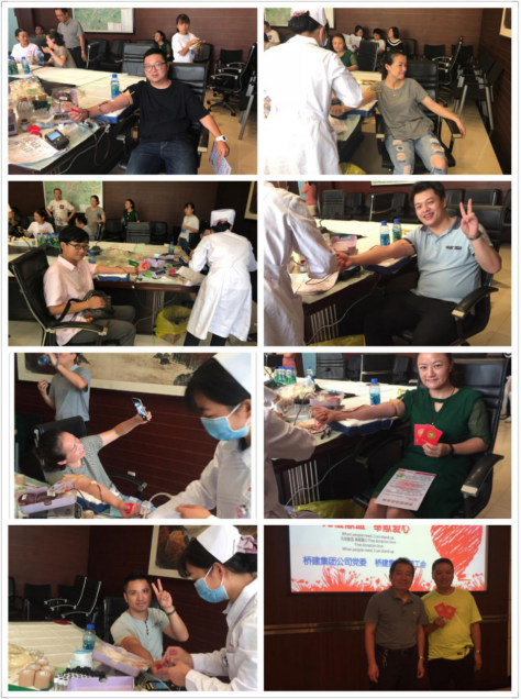 在集團(tuán)公司1501會議室,武漢血液中心工作人員將檢查設(shè)備、采血設(shè)備、營養(yǎng)品擺放得整整齊齊,20余名獻(xiàn)血志愿者有條不紊地進(jìn)行登記、檢查、采血,整個過程秩序井然,現(xiàn)場一片輕松、歡樂的氛圍——這是橋建集團(tuán)公司和武漢血液中心合作開展的無償獻(xiàn)血活動當(dāng)天的現(xiàn)場情景。