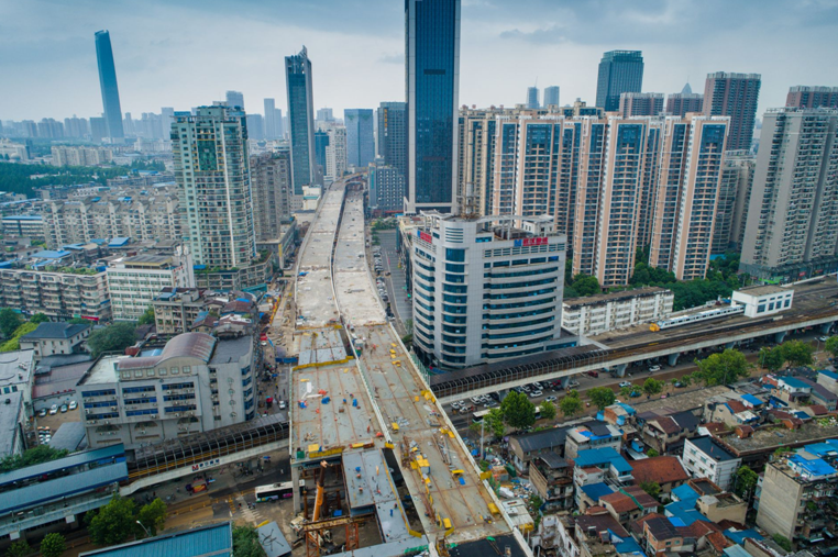 與此同時,在硚口路、寶豐路與解放大道交會處,與高架橋跨輕軌段相連的寶硚四層立交主體結(jié)構(gòu)也于9日完工,立交雛形已現(xiàn)。待立交匝道全部建成后,有望解決建設(shè)大道、解放大道及漢陽來往車輛的擁堵問題。
