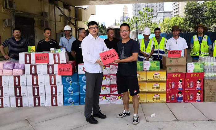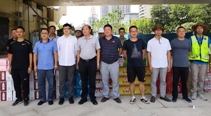 7月24日上午,市城投集團公司總經理助理李衛代表市城投集團公司主要領導,來到沿江大道項目現場,慰問奮戰在高溫天氣下的一線建設者,并送去防暑降溫物質。