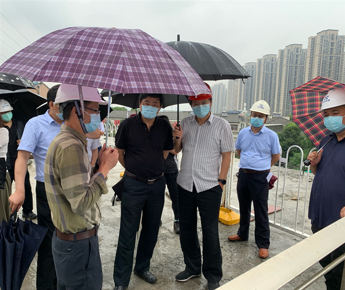 5月25日下午,市城建局夏平局長、徐建平副局長會同市城投集團公司總經理李兵、副總經理盛華實地調研我公司負責代建的丁字橋南路和建安街工程建設情況。