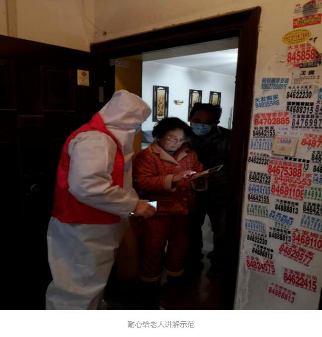 “掃樓”是個辛苦活,也是個細致活。為了確保每家每戶知曉并掌握微信健康碼操作,幫扶人員不僅要逐棟逐戶門口張貼健康碼公告,還要敲門入戶一個個進行宣傳,指導“掃碼”操作并作好登記。隊員黃衛對此深有感觸:“梅巖村是個老小區,很多居民年齡偏大,我們往往一頓爬樓還沒時間喘口氣,又得手把手教他們操作,有些反應較慢或者聽力差的甚至要一遍遍示范。” 梅巖村是個拆遷小區,不少門棟只有1-2戶人家,有時爬一棟樓只能完成一戶家庭的健康碼登記,可以說是費力不討好,但下沉人員從不因人少而“偷工減料”,堅持戶戶上門。由于現有居民大部分和戶口不一致,幫扶人員就一個個仔細核對,確保不漏一人。有些獨居老人沒有智能手機,就認真做好登記,報給社區統一處理。個別住戶防范意識較強,不愿意開門,下沉人員就想辦法隔門進行講解。由于防盜門有隔音效果,交流起來很費勁,隊員段凡開玩笑說:“遇到這種情況,對話只能靠猜,講解只能靠吼。” 在大家的共同努力下,兩天下來,順利完成 72戶,180人的健康碼登記和特殊關照5類人員統計工作,其中35位老人無微信,已做好登記交社區處理。