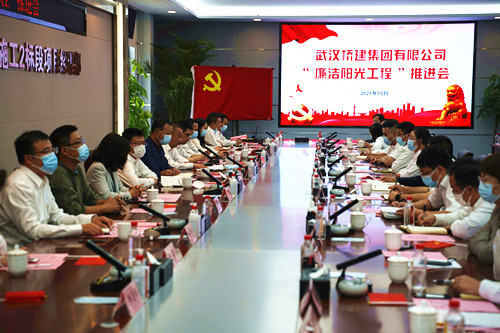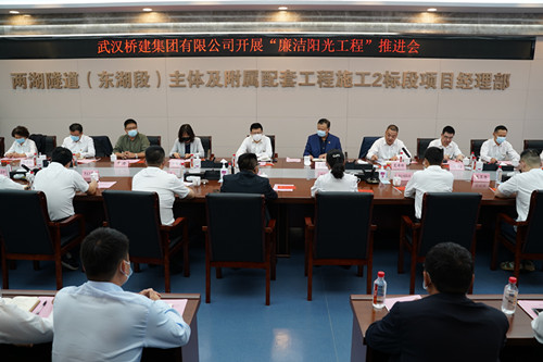 為進一步加強工程項目建設領域黨風廉政建設,確保工程實施過程遵章守紀,從源頭上嚴防滋生腐敗。10月8日下午,武漢橋建集團有限公司在兩湖隧道東湖段二標段風光村項目部會議室召開“廉潔陽光工程”推進會。市紀委監委派駐市城建局紀檢監察組副組長鄔幗俊、市建設工程安全監督站副站長牛力、市城投集團公司紀委書記榮鞏、紀委副書記李兆忠、監察專員辦相關負責同志到場指導,橋建集團全體領導及中層以上全體干部、兩湖隧道東湖段工程施工和監理單位負責人約60余人參加會議。