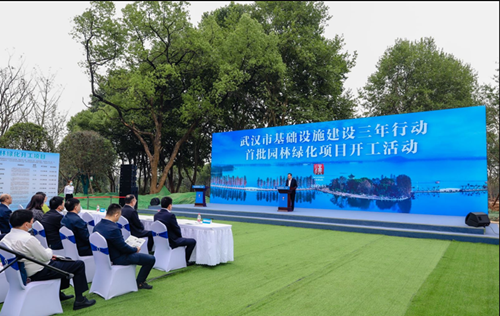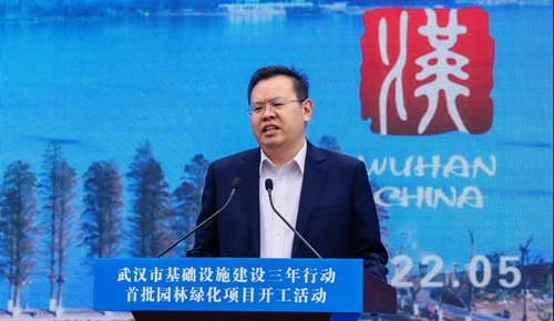 2022年5月18日上午,武漢市基礎設施建設三年行動首批園林綠化項目開工活動在東湖風景區落雁景區改造項目現場舉行,市委副書記、市人民政府市長程用文宣布開工并講話。