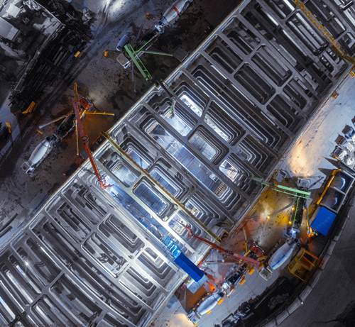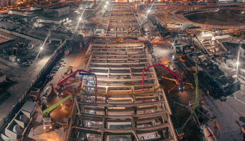 4月18日下午15時(shí)30分,該工程開始實(shí)施車站段主體結(jié)構(gòu)底板混凝土澆筑。為確?;邮┕ぐ踩凸こ藤|(zhì)量,整個(gè)車站段結(jié)構(gòu)底板共分為7倉,采用跳倉施工方式率先對(duì)底板第2倉進(jìn)行澆筑。該倉長36米,寬43米,澆筑混凝土總量約3680立方,于4月19日下午16時(shí)30分澆筑完成。明挖區(qū)間段的首倉澆筑也緊接于4月21日開始澆筑,并于4月22日下午順利完成。