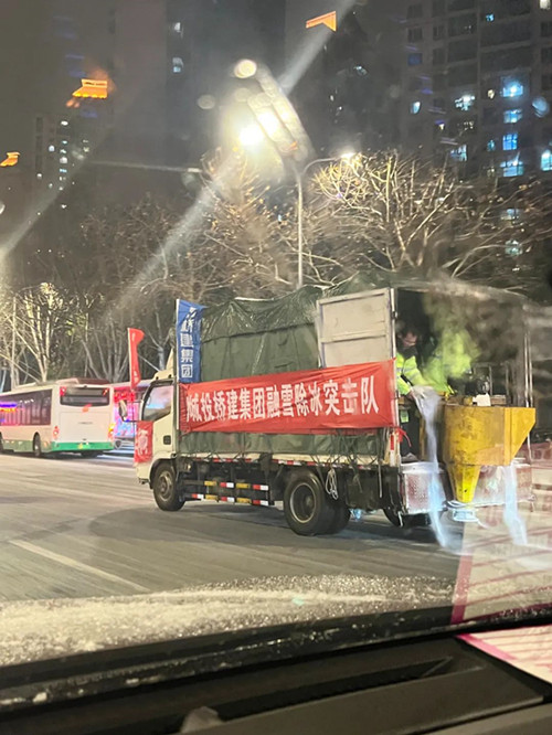 自2月20日起,武漢先后出現了雨、雨夾雪、凍雨、冰粒,新一輪低溫暴雪天氣來勢洶洶,再一次給市民出行帶來了極大不便。為確保道路交通安全和人民群眾正常生產生活秩序,橋建集團公司高度重視,積極響應市城投集團公司部署,提前謀劃,認真研判分析極端天氣安全風險,在總結應對節前雨雪冰凍天氣經驗的基礎上,針對三環線北段(長豐橋—天興洲大橋)28公里主線道路、匝道,進一步優化既有應急保障方案,發揚連續作戰精神,迅速吹響“集結號”,打好應對主動仗,以“速動”應對“速凍”,快速集結各方人員以及融雪除冰車輛、機械設備,補充融雪劑等,同冰雪進行不分晝夜的鏖戰。同時,公司還積極承擔國企社會責任,充分發揮黨員干部先鋒模范作用,積極組織公司廣大黨員干部職工對單位及周邊道路、特別是人行道,清除道路積雪、斷枝和其他障礙物,以實際行動最大限度減少和降低冰凍天氣的影響,保障市民出行安全,以飽滿的激情堅決打贏新一輪寒潮大風及低溫雨雪冰凍天氣防范應對這場硬仗。