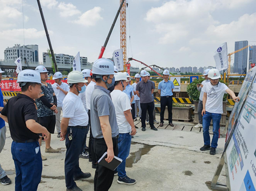 會前,與會人員參觀了二七過江通道漢口段項目現場安全標準化落實情況。二七過江通道漢口段項目在臨邊防護、高空作業防護、安全通道設置、現場安全動態巡查等方面嚴格規范,給人留下了深刻的印象。