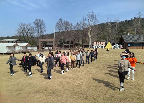 三月的大地,春風如約而至,柔軟地舒展著自己。橋建女職工們齊聚山水環抱的郊外,在藍天下,沐浴著暖陽,點點頭、擺擺手、伸伸腰、抖抖腿,合著音樂、踩著節拍,跳起了歡快的健身操。為使身心完全釋放,女職工們分成4個小組,進行了“一圈到底”“翻牌接力”等團隊趣味活動。通過團結協作、群策群力,女職工們以良好的成績完成了各項游戲,體現了和諧融洽、昂揚向上的精神風貌。