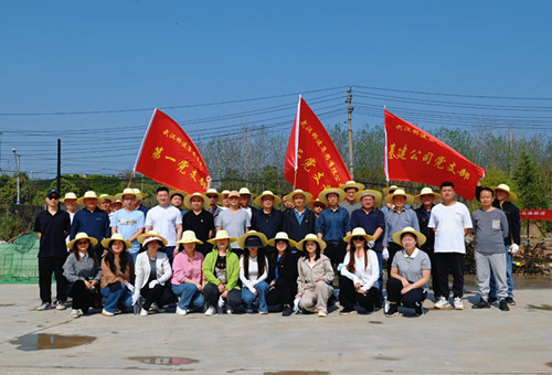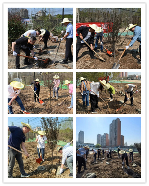在項目綠化施工現場,經過專業人員的簡單培訓,40余名干部職工擼起袖子,熱情高漲地參與現場苗木種植。大家三四個人一組,分工協作,有的挖坑、有的扶苗、有的培土,每個環節銜接緊湊、繁忙而有序。經過一上午的辛苦勞作,一排排新栽的紅葉李、石楠樹,為原本空曠的土地增添了勃勃生機。