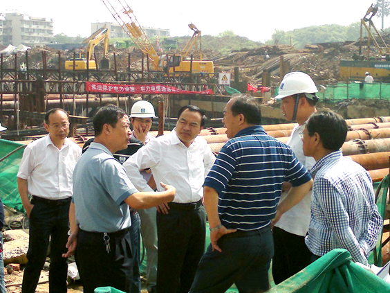 5月16日下午,唐良智市長,胡立山副市長,王繼連副秘書長及市重點辦負責人前往梨園通道工程檢查。在施工現場,唐良智市長,胡立山副市長察看了施工情況,聽取了市城投集團關于施工進展情況的匯報,對加快通道建設、保證按期通車提出了要求。同時,對關系到通道周邊排水的管道改造作了限時完成的指示。