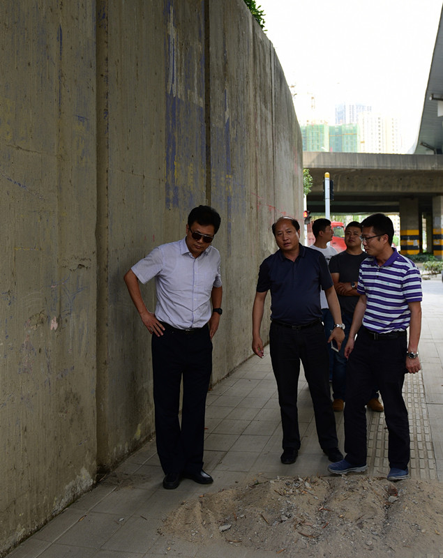 在三環(huán)北盤龍閘口,李總要求我公司要實事求是地制定該閘口的防汛應(yīng)急預(yù)案,閘柱閘條的安裝工藝要合理,方案要切實可行。隨后,李總一行來到園博園東路漬水點,對該路段排水管網(wǎng)的疏通和整改提出了具體要求,并針對園博園建設(shè)過程中造成的部分排水井堵塞和填埋問題,要求盡快協(xié)調(diào)相關(guān)單位處理。在雄楚大街漬水點,李總要求對雄楚大街全線排水管網(wǎng)要進(jìn)行“地毯式”排查,對排查中發(fā)現(xiàn)的漬水隱患要在一周內(nèi)完成整改,確保避免暴雨漬水情況的再次發(fā)生。