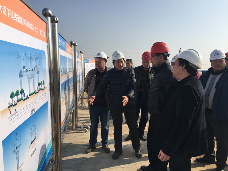 1月26日上午,市城投集團公司總經理李兵、總經理助理陳春保帶隊檢查春節期間不停工的解放大道下延線工程現場,實地查看工程建設情況,慰問現場工作人員。