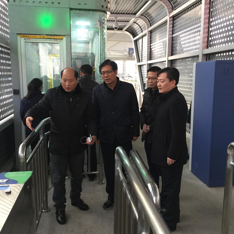 12月30日下午,市城投集團公司總經理李兵、副總經理盛華帶隊來到我公司負責代建的雄楚大街BRT項目現場,調研BRT試運行情況。
