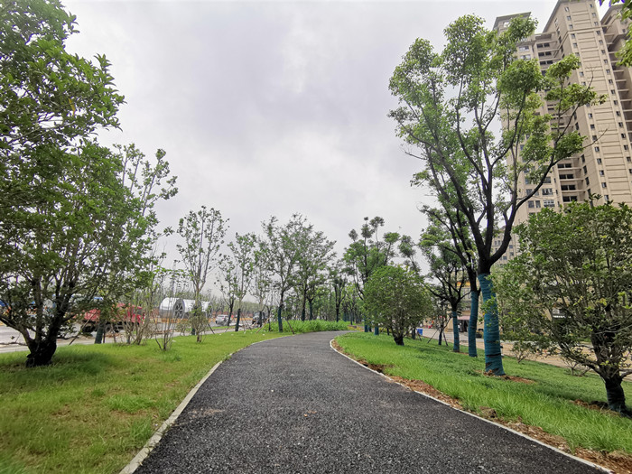 經過改造后,曾經雜路邊草叢生、破舊不堪的黃家湖大道變成一條最寬處達60米的景觀大道,整條道路煥然一新:刷黑的道路寬敞平坦,道路兩旁種植著各種喬木和灌木,像是一片片小森林,沿著綠化帶的步道徜徉,令人心曠神怡。