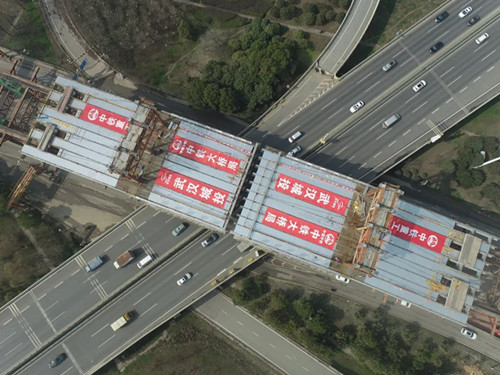 白沙洲大道快速化改造主線跨三環(huán)線頂推完成后